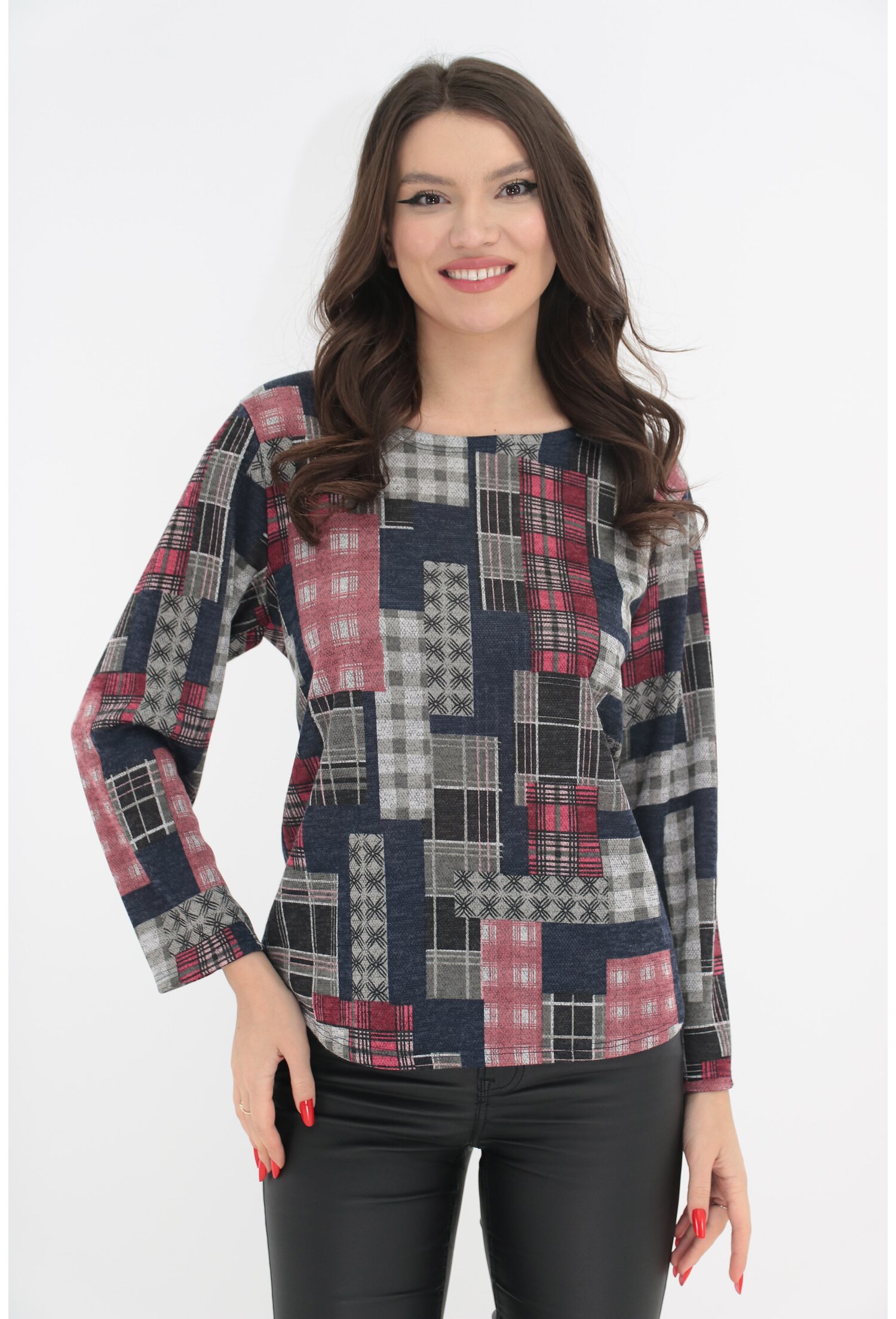 Bluza din Jerse cu Print Geometric Gri-Roz: Casual & Elegant