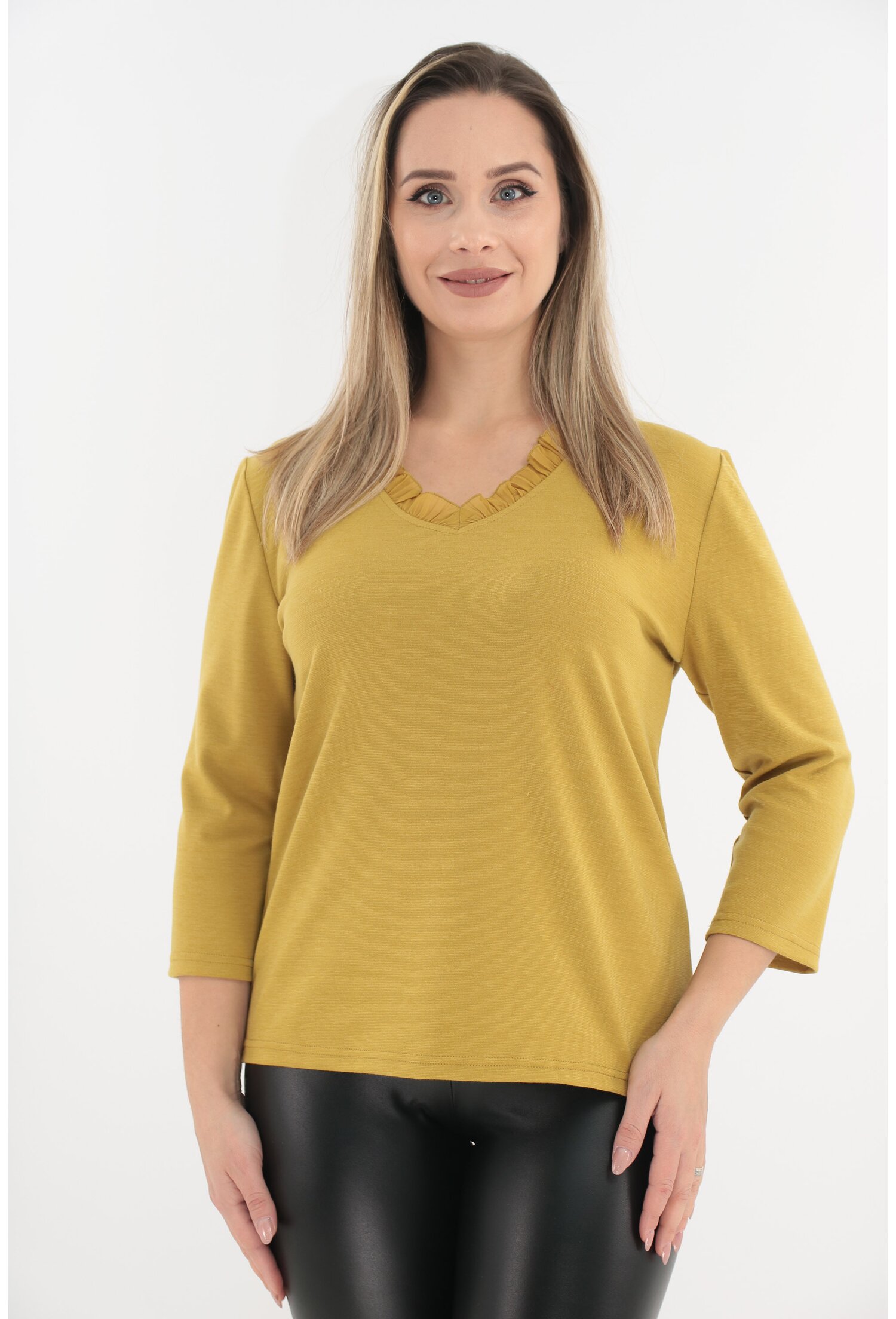 Bluza Mustar cu Volanas – Eleganță și Confort pentru Orice Ocazie
