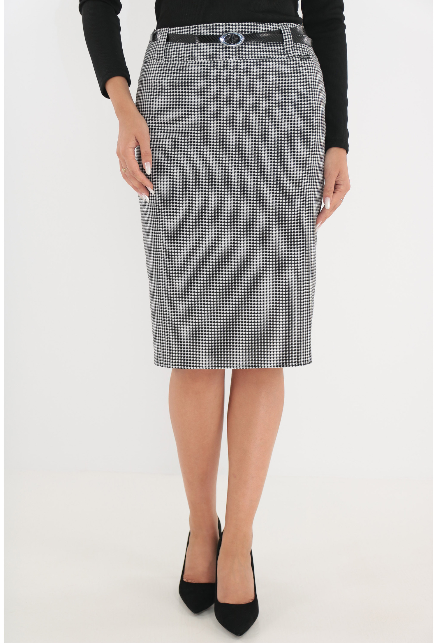 Fusta conică cu imprimeu tip picior de cocoș este alegerea perfectă pentru orice femeie care își dorește să combine stilul clasic cu un aer modern. Confectionată dintr-o stofă elastică și capișonată, fusta nu doar că oferă un confort excelent, dar și o ajustare ideală pe corp, punând în evidență formele feminine. Cu un design elegant, această fustă este prevăzută cu o curea în talie care accentuează silueta, oferindu-ți un look rafinat.