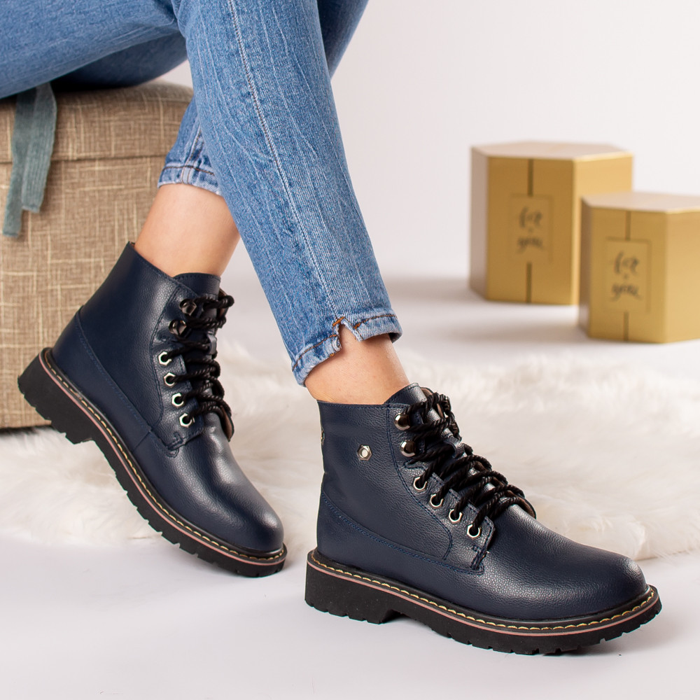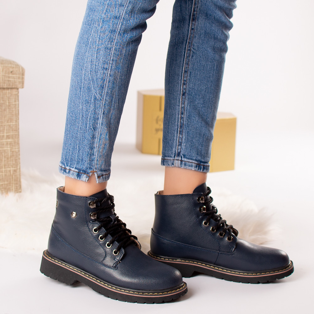 Ghete Dama Piele Naturala Agueda Imblanita Bleumarin: Confort si Stil