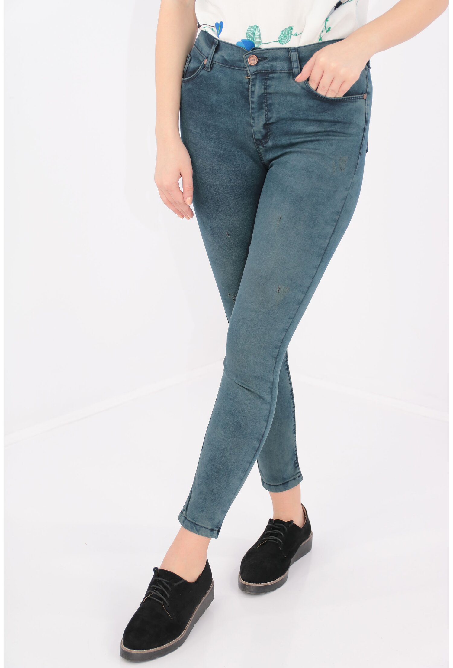 Jeans Albastri Decolați Skinny Fit – Talie Înaltă