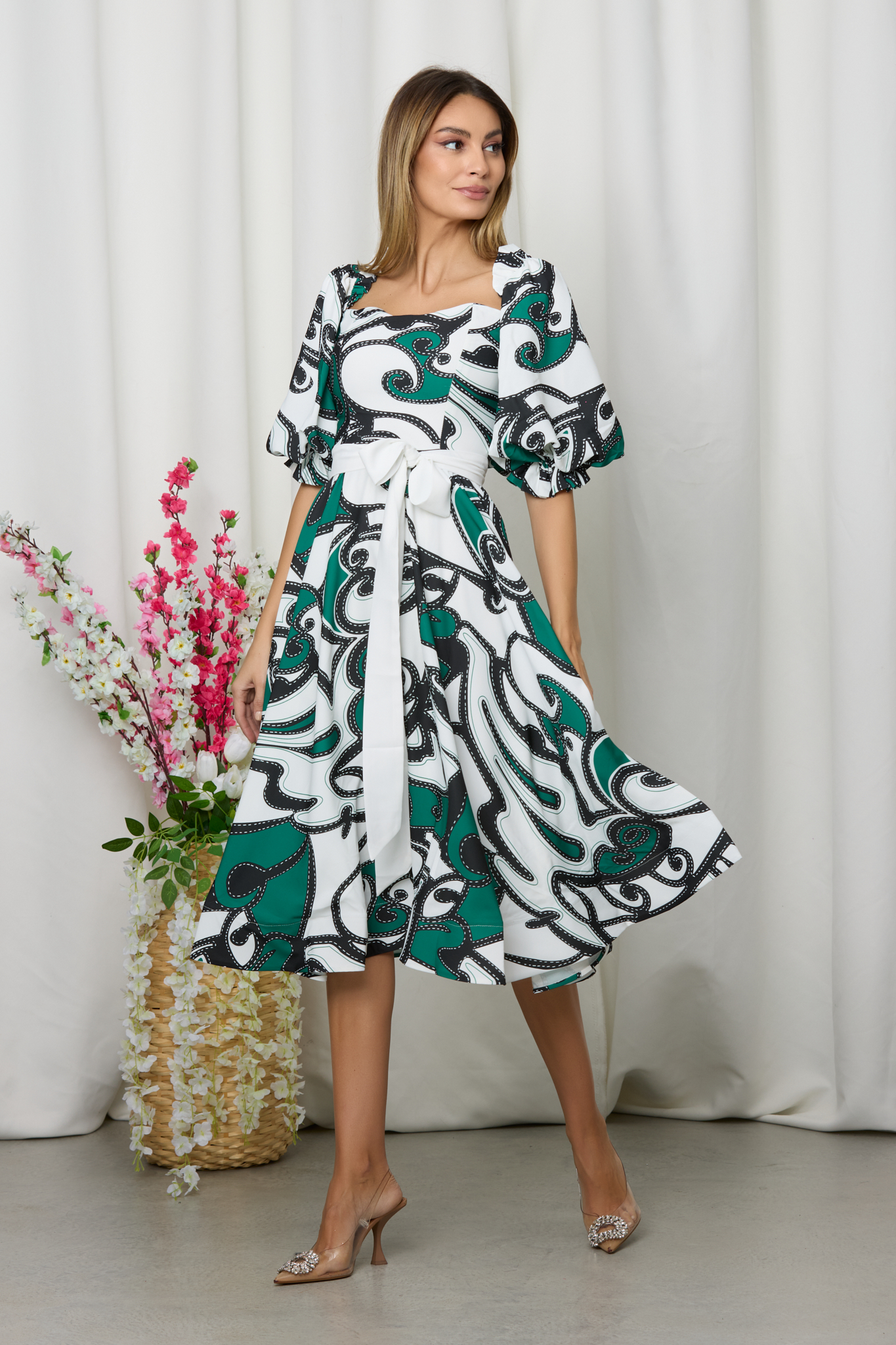 Dacă ești în căutarea unei rochii elegante și spectaculoase care să-ți pună în valoare silueta, Rochia Daisy din Colectia de Rochii de Lux este alegerea perfectă pentru tine. Realizată din voal cu imprimeu alb, verde și negru, această rochie este o combinație perfectă între rafinament și stil.