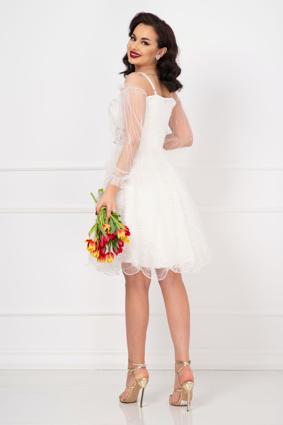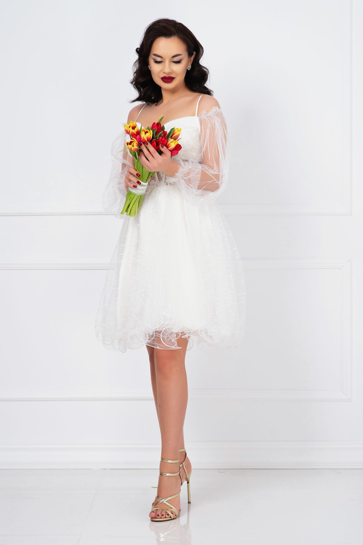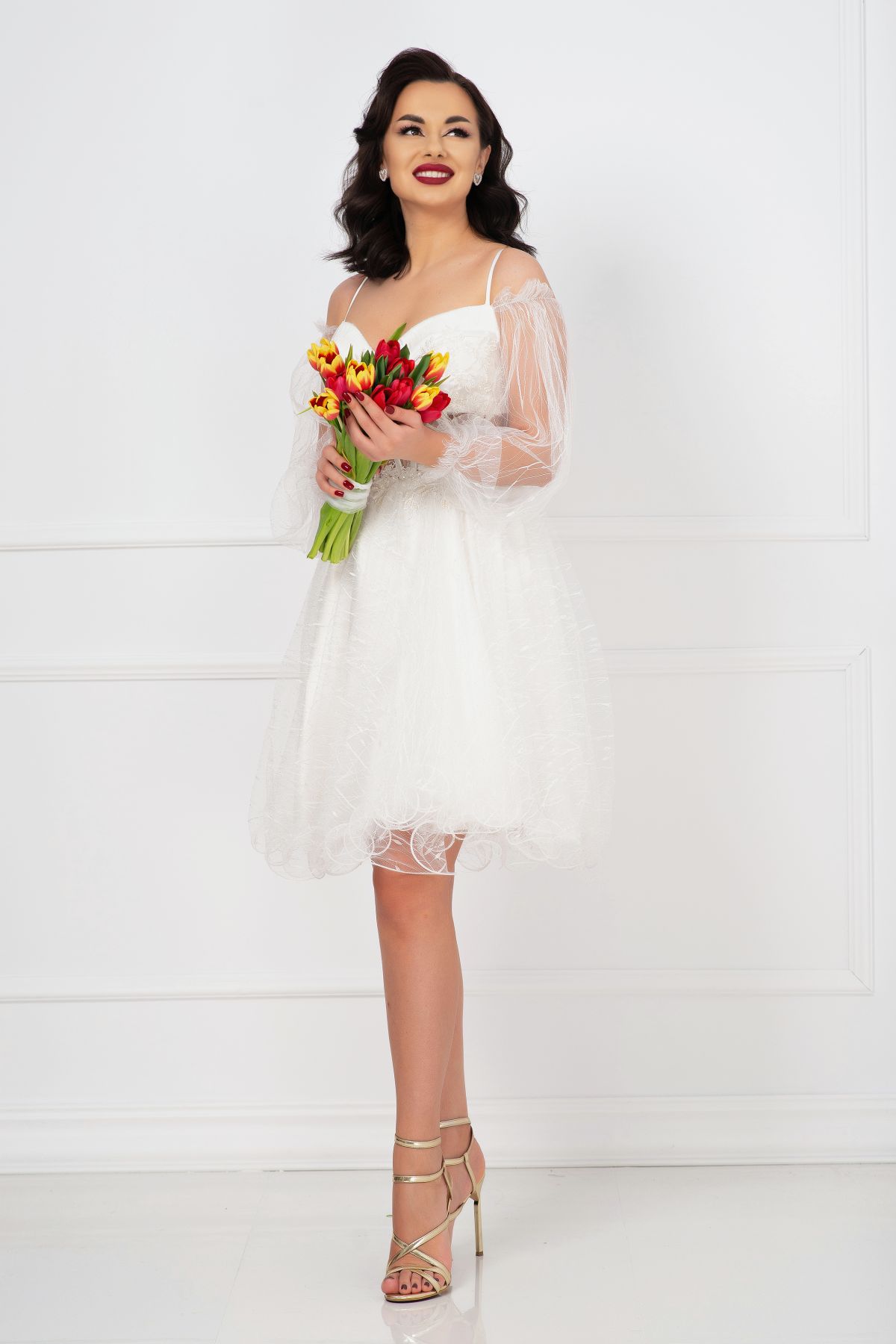 Rochie de Cununie Meredith Baby-Doll Albă cu Perle și Mărgele