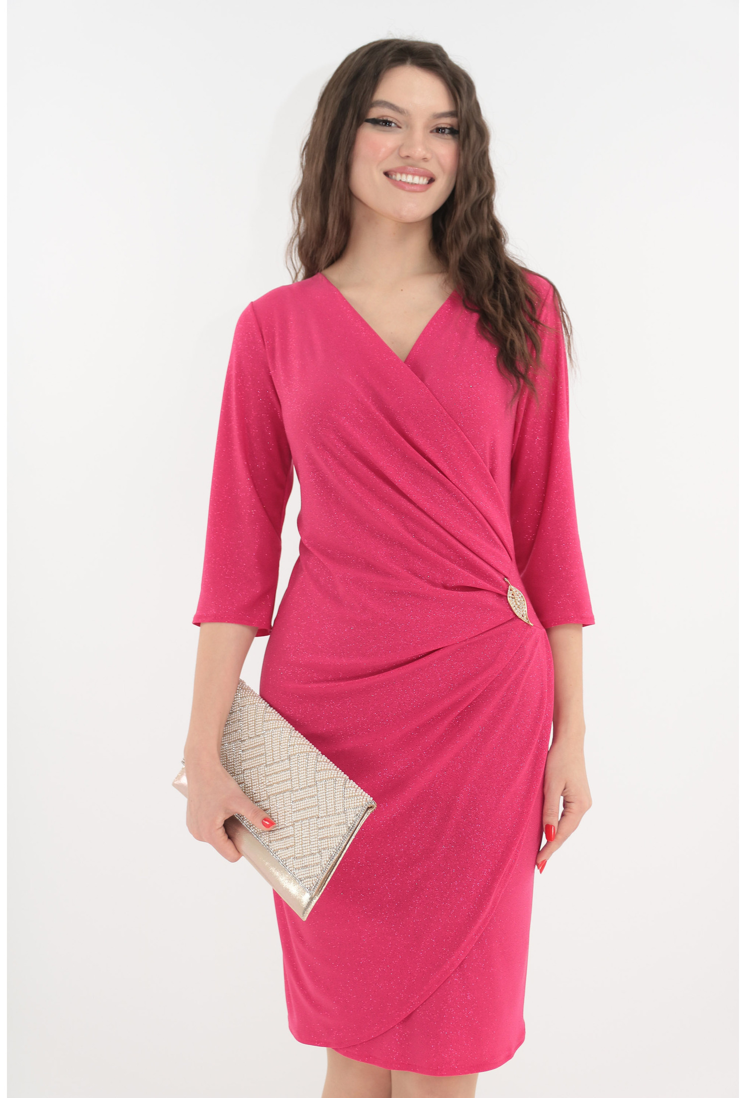 Rochia fucsia de ocazie din lurex cu glitter reprezintă o alegere excelentă pentru orice garderobă modernă. Eleganța acesteia, combinată cu detalii fashionable, o face un must-have. Nu lăsa ocazia să treacă! Adaugă un strop de culoare și strălucire la următorul tău eveniment.
