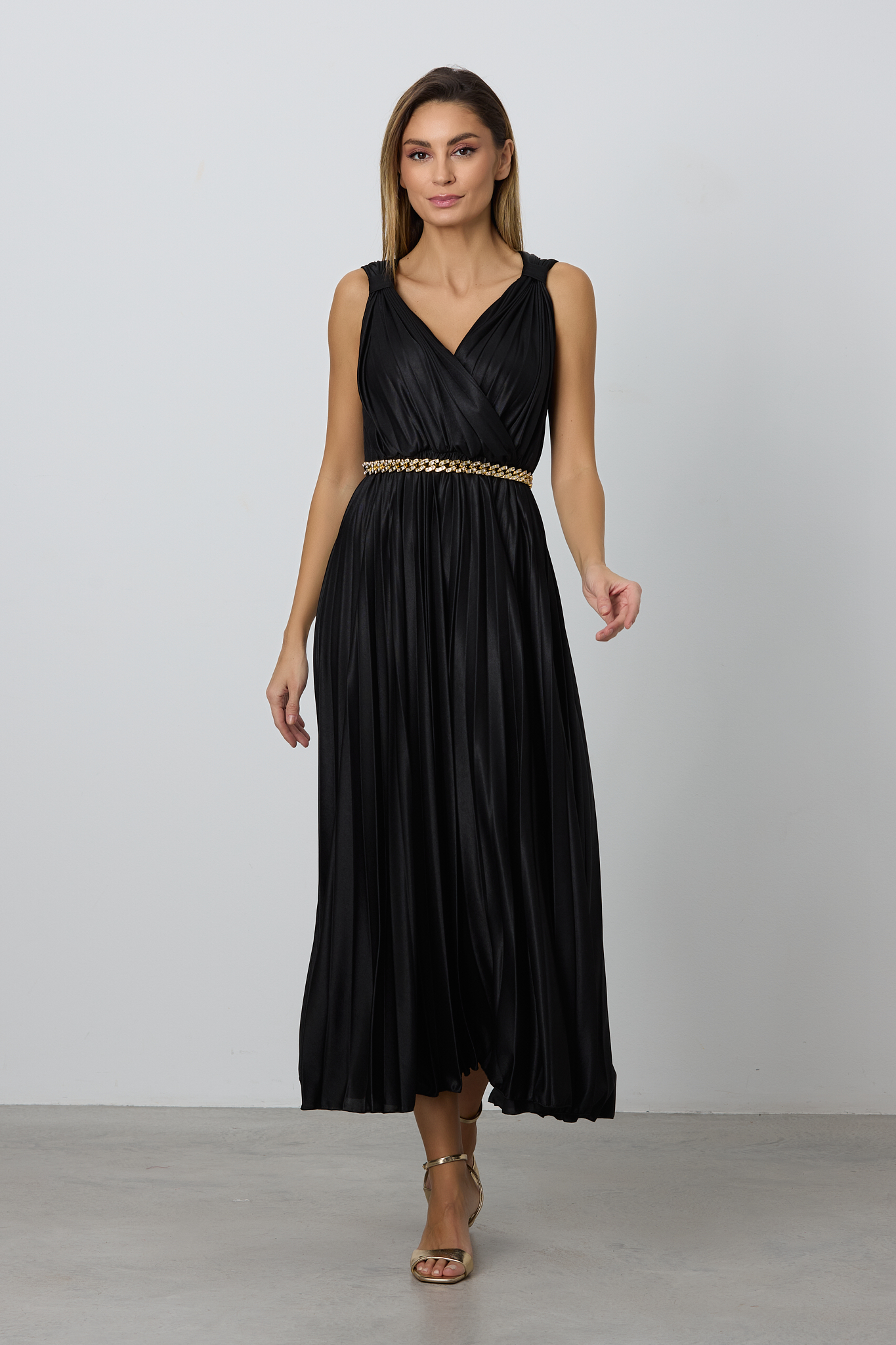 Cum sa accesorizezi o rochie midi neagra cu pliuri
