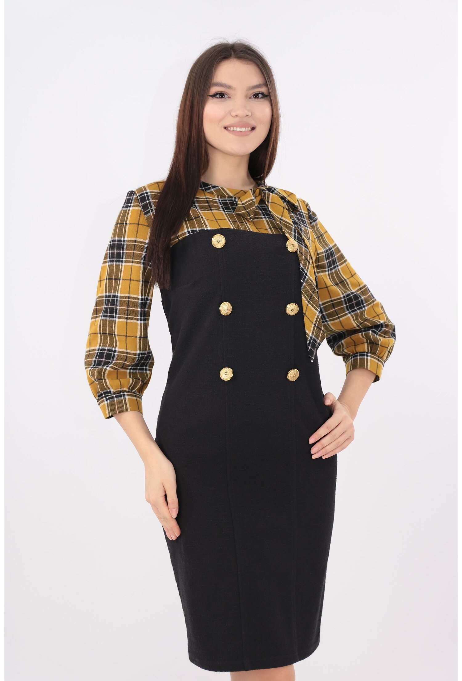Detalii Mâneci 3/4 în carouri mustar și negre