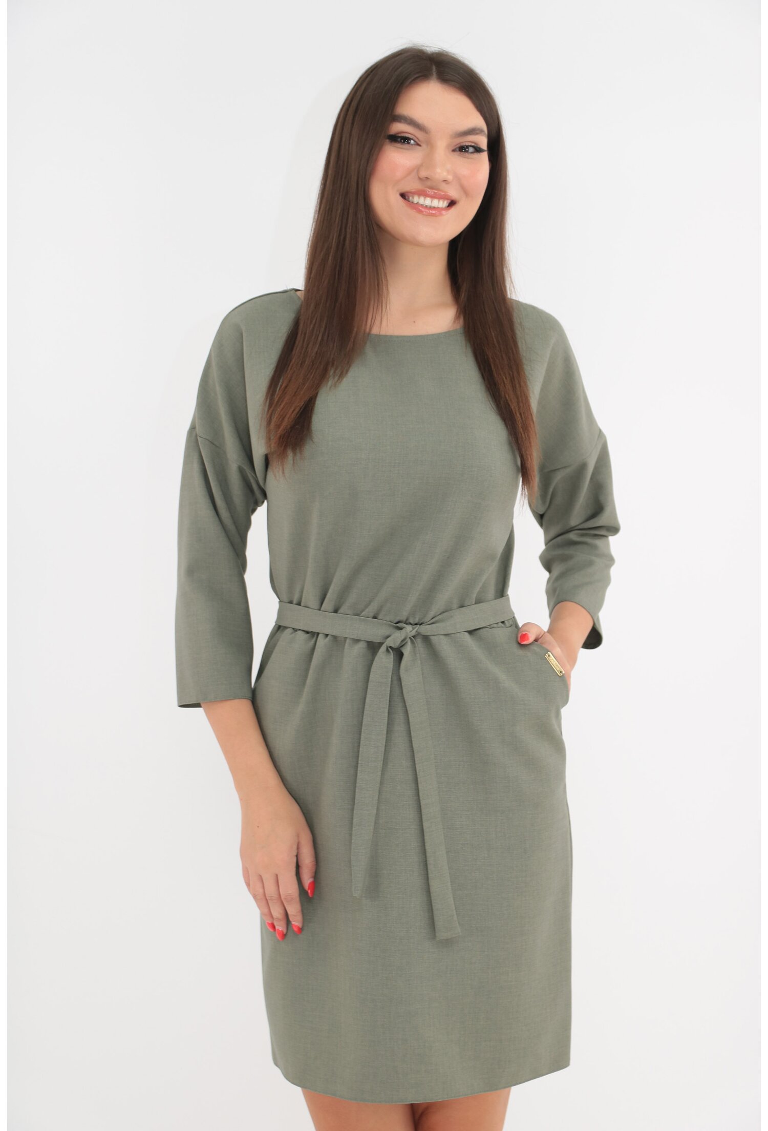 Descoperă Rochia Olive cu Buzunare și Cordon în Talie