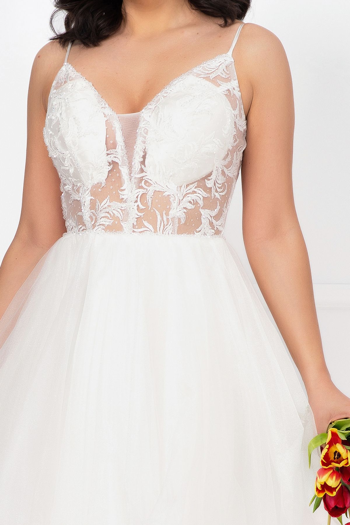 Nu rata ocazia de a purta o rochie care nu doar că mărește frumusețea ta, dar îți adaugă și un plus de încredere! Rochia noastră prețioasă de cununie albă din tulle, cu detalii rafinate și un design modern, este alegerea perfectă pentru ziua ta specială.