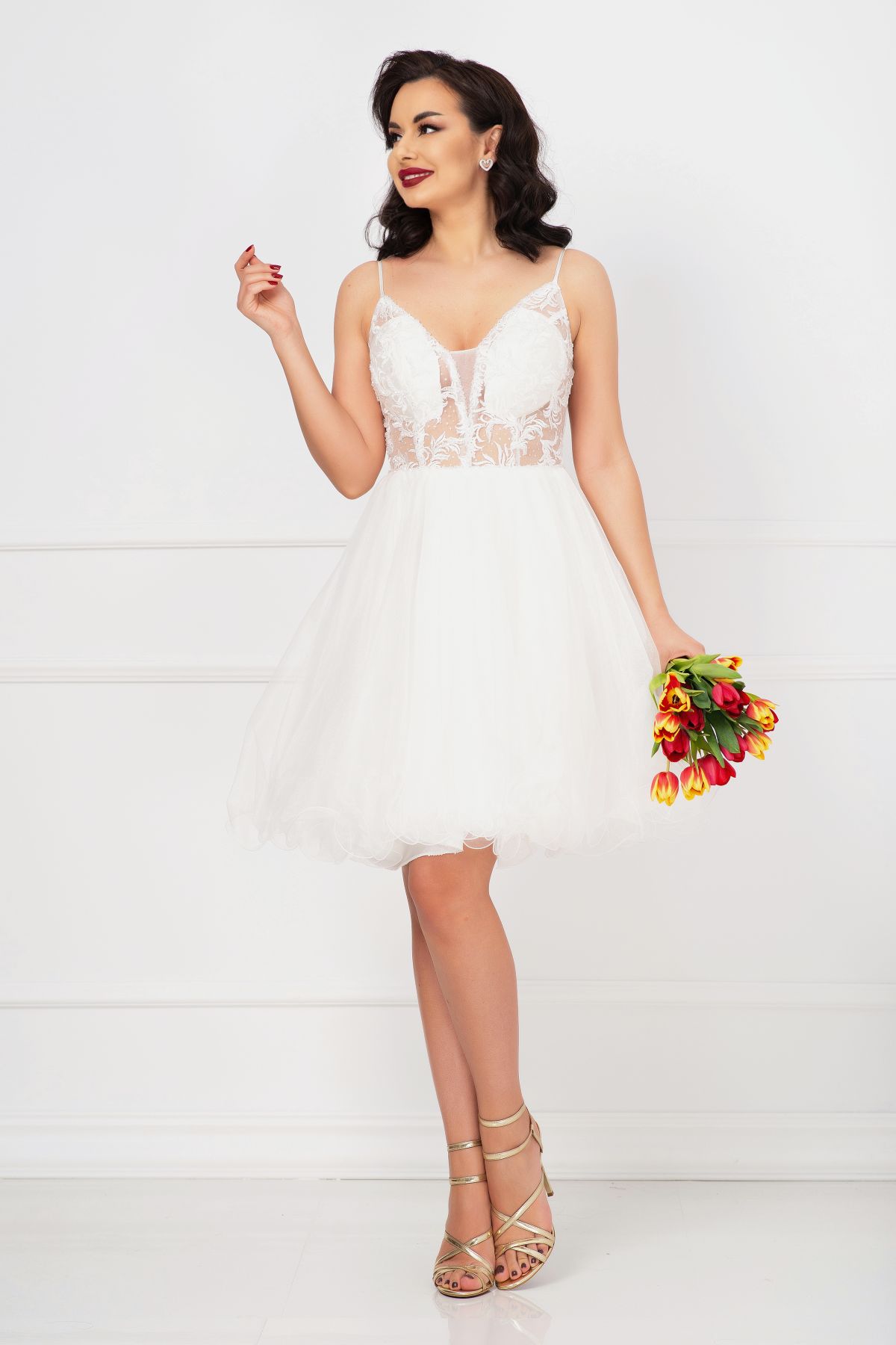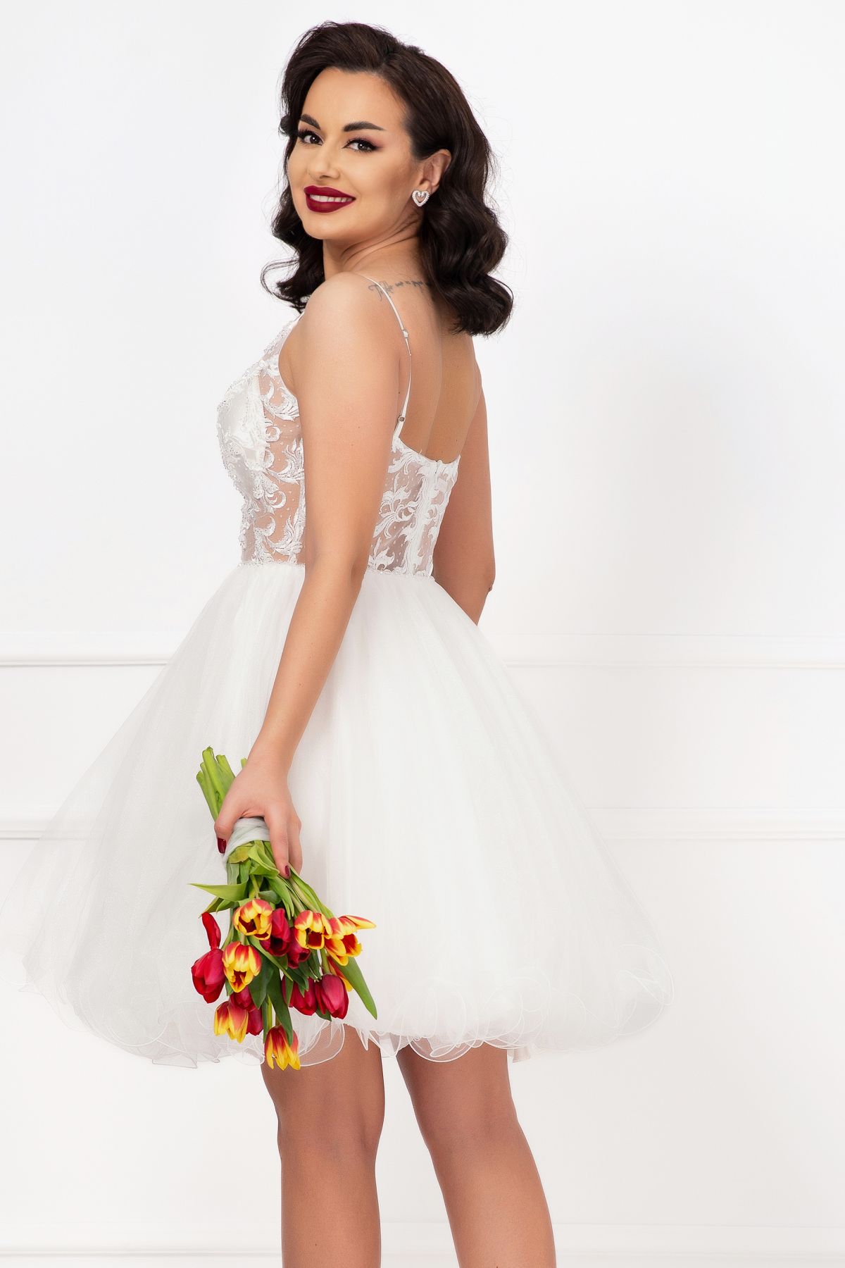 Această rochie albă din tulle este extrem de versatilă și se potrivește perfect pentru diverse ocazii: