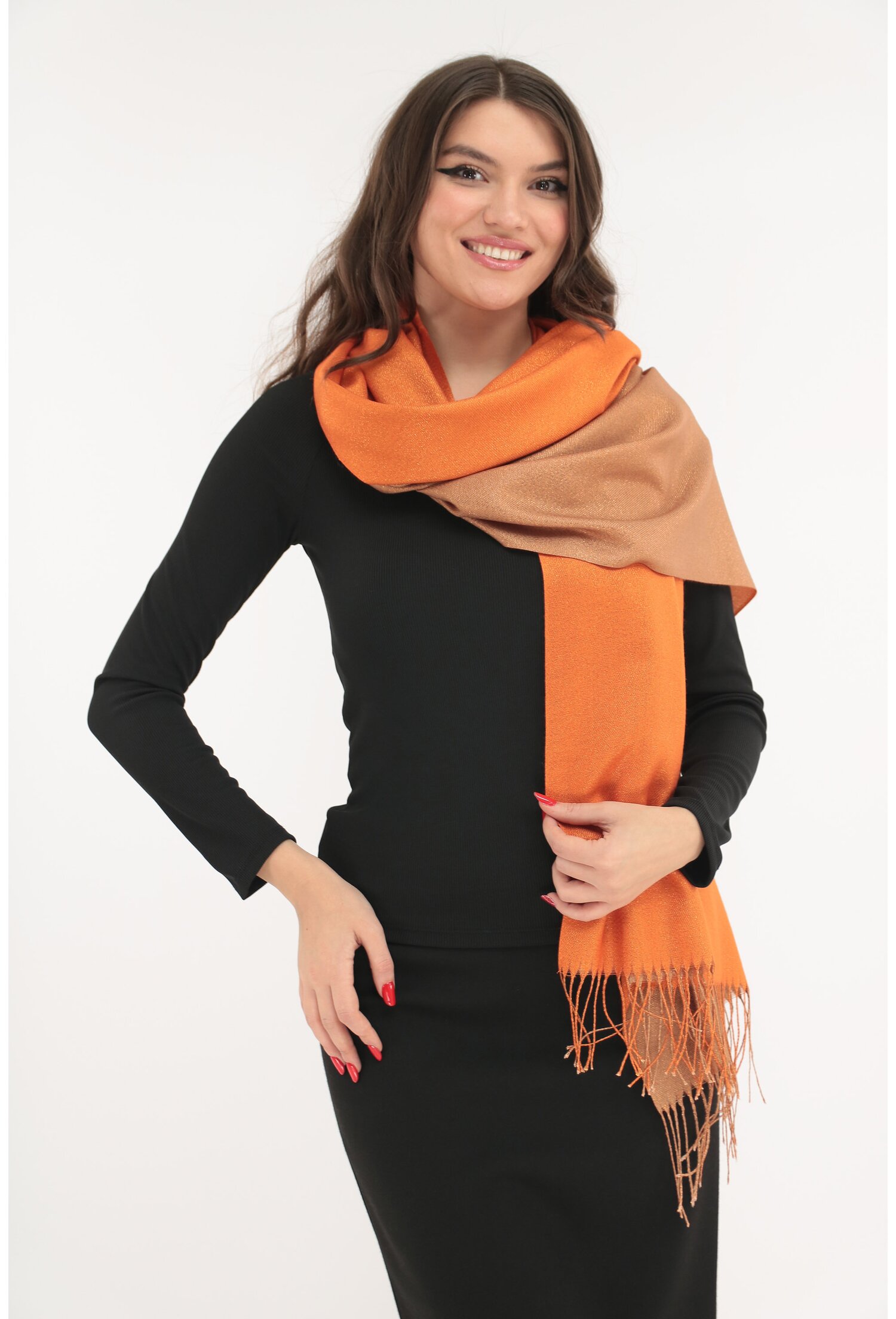 Nimic nu se compară cu o atingere blândă de cașmir pe piele! Salul fin portocaliu din cașmir este o alegere perfectă pentru a îmbina stilul cu confortul. Nu lăsa ocazia să-ți scape! Comandă acum și transformă-ți aspectul în zilele friguroase – nu vei regreta! Cu siguranță vei dori să-l porți la fiecare pas. Deci, de ce să aștepți? Dă-ți un refresh garderobei tale!”