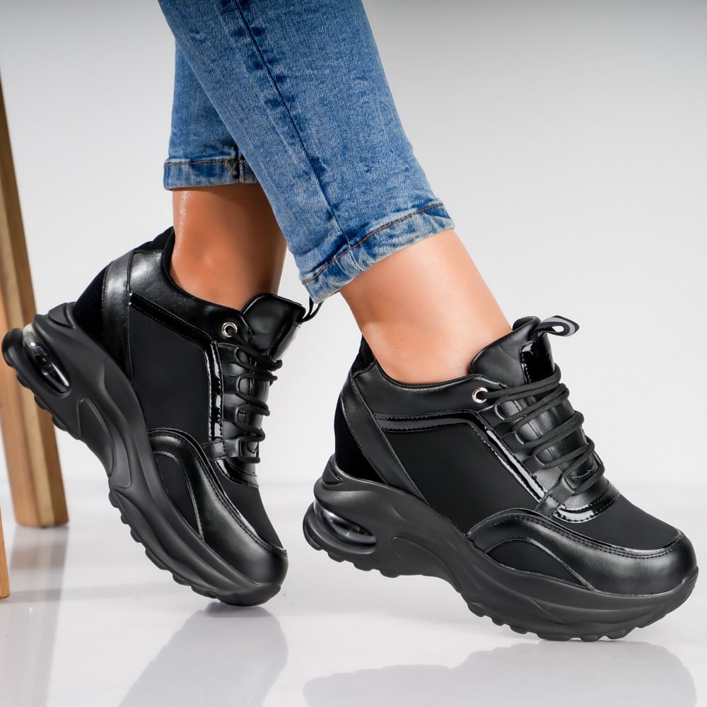 Sneakers Dama cu Platforma Negri din Piele Ecologica Rendo