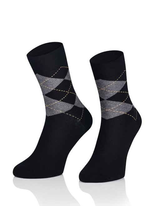 Aceste sosete sunt disponibile în culoarea neagră cu romburi gri, un design elegant și modern.