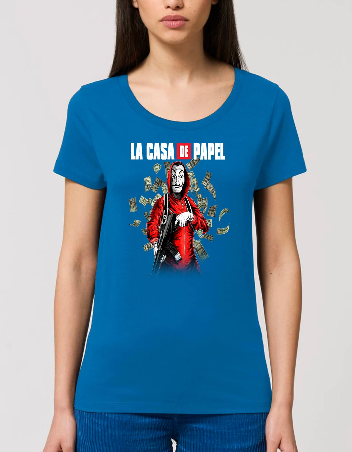 Descoperă acum tricoul personalizat esențial feminin CASA DE PAPEL 2, o piesă vestimentară care aduce un omagiu stilului contemporan, fiind perfect pentru zilele călduroase de vară. Disponibil în culori vibrante precum alb, verde, galben, bleu, albastru, roșu, fuchsia, kaki, gri deschis, bleumarin, roz, portocaliu, negru și antracit, acest tricou va deveni cu siguranță preferatul tău.